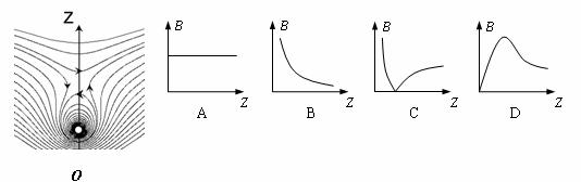 9.如图所示,为某种用来束缚原子的磁场的磁感线分布情况,以O点(图中白点)为坐标原点,沿Z轴正方向磁感应强度B大小的变化最有可能为