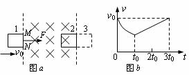 14.如图a所示在光滑水平面上用恒力F拉质量m的单匝均匀正方形铜线框,边长为a,在1位置以速度v0进入磁感应强度为B的匀强磁场并开始计时t=0,若磁场的宽度为b(b>