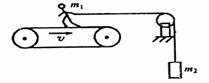 8.测定运动员体能的一种装置如图所示,运动员质量m1,绳拴在腰间沿水平方向跨过滑轮 (不计滑轮摩擦、质量),悬挂重物m2,人用力蹬传送带而人的重心不动,使传送带以速率v向右运动,下面是人对传送带做功的说法,正确的是 ( )