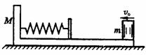 12.如图所示,质量为M的长木板静止在光滑的水平地面上,在木板的右端有一质量为m的小铜块,现给铜块一个水平向左的初速度v0,铜块向左滑行并与固定在木板左端的长度为L的轻弹簧相碰,碰后返回且恰好停在长木板右端。根据以上条件可以求出的物理量是 ( )