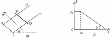 回路的面积为S,总电阻为R且保持不变。匀强磁场方向垂直框架平面斜向上,其变化规律如图乙所示。从