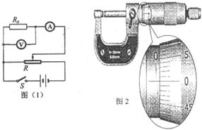 Ⅱ.某同学利用图(1)所示的实验电路,测量一段粗细均匀的金属丝在常温下的电阻,再用米尺测出金属丝的长度L,用螺旋测微器测出金属丝的直径d,如图(2)所示,进而应用