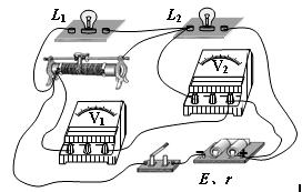 4.如图所示,电源电动势为E,内电阻为r.两电压表可看作是理想电表,当闭合开关,将滑动变阻器的触片由左端向右滑动时,下列说法中正确的是: ( )