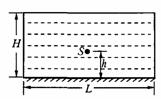 ⑵ 如图所示的圆柱形容器中盛满折射率n=2的某种透明液体,容器底部安装一块平面镜,容器直径L=2H,在圆心正上方高度h处有一点光源S,要使人从液体表面上任意位置处能够观察到点光源S发出的光,h应该满足什么条件?