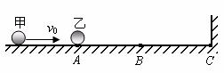 ⑵ 在光滑的水平面上,质量为m1的小球甲以速率v0向右运动。在小球甲的前方A点处有一质量为m2的小球乙处于静止状态,如图所示。甲与乙发生正碰后均向右运动。乙被墙壁C弹回后与甲在B点相遇,BC=AB。已知小球间的碰撞及小球与墙壁之间的碰撞均无机械能损失,且小球与墙壁碰撞的时间可忽略不计,求甲、乙两球的质量之比m1:m2。