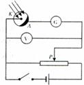 18.用下图电路可研究光电效应规律。图中标有A和K的为光电管,其中A为阴极,受光照射时可产生光电效应现象,K为阳极.理想电流计