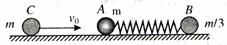 m的小球B通过轻质弹簧相连并处于静止状态,弹簧处于自由伸长状态;质量为m的小球C以初速度V0沿AB连线向右匀速运动,并与小球A发生弹性正碰.在小球B的右侧某位置固定一块弹性挡板(图中未画出),当小球B与挡板发生正碰后立刻将挡板撤走,不计所有碰撞过程中的机械能损失,弹簧始终处于弹性限度以内,小球B与固定挡板的碰撞时间极短,碰后小球B的速度大小不变,但方向相反,则B与挡板碰后弹簧弹性势能的最大值Em可能是