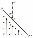 25.(22分)如图所示,有一与竖直方向夹角为45°的直线边界,其左下方有一正交的匀强电磁场,磁场方向垂直于纸面向里,磁感应强度大小为B;电场方向竖直向上,场强大小为