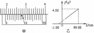 ②某同学在利用单摆测重力加速度的实验中,测出多组绳长L与周期T的数据,根据实验数据,作出了T2―L的关系图象如图乙所示,根据图中数据,可算出重力加速度的值为