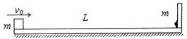 24.(19分)在光滑水平面上有一带挡板的长木板,其质量为m,长度为L(挡板的厚度可忽略),木板左端有一质量也为m(可视为质点)的滑块,挡板上固定有一个小炸药包,如图所示(小炸药包长度以及质量与长木板相比可忽略)滑块与木板间的动摩擦因数恒定,整个系统处于静止。给滑块一个水平向右的初速度v0,滑块相对于木板向右运动,恰好能与小炸药包接触,接触瞬间由外界遥控操作使小炸药包爆炸(此过程时间极短,爆炸后滑块与木板只在水平方向运动,且完好无损),滑块最终回到木板的左端,恰与木板相对静止.求: