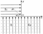 25.(22分)如图所示,直角坐标的x轴为水平方向,y轴竖直向上。在第二象限中存在着水平方向的电场E1,在y<0的区域中存在竖直向上的电场E2和水平方向的磁场B,且电场的大小E1=E2。图中A点至坐标原点O的连线与x轴夹角为45°,且= m,现有质量m=10-