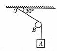 14.如图所示,轻绳上端固定在天花板上的O点,下端悬挂一个重为10N的物体A,B是固定的表面光滑的圆柱体。当A静止时,轻绳与天花板的夹角为30