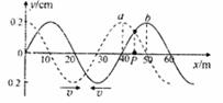 19.两列简谐横波在同一介质中相向传播,t=0时刻,这两列波的波动图象如图所示。其中简谐横波a(图中虚线所示)沿x轴的正方向传播;简谐横波b(图中实线所示)沿x轴的负方向传播。已知位于x=