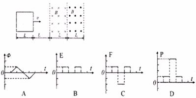 21.如图所示,为两个有界匀强磁场,磁感应强度大小均为B,方向分别垂直纸面向里和向外,磁场宽度均为L,距磁场区域的左侧L处,有一边长为L的正方形导体线框,总电阻为R,且线框平面与磁场方向垂直,现用外力F使线框以速度v匀速穿过磁场区域,以初始位置为计时起点,规定:电流沿逆时针方向时的电动势E为正,磁感线垂直纸面向里时磁通量