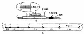 ②将纸带连接在金属板Br的后面,通过打点计时器连续打下一些计时点,测量后的结果如图乙所示。图中几个连续的计数点的时间间隔0.1s,由此可知水平力F=