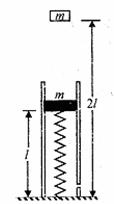 (g为重力加速度)。在初始位置滑块静止,圆筒内壁对滑块的阻力为零,弹簧的长度为l。现有一质量也为m的物体从距地面