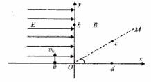 25.(20分)如图所示;在直角坐标系xOy的第二象限中,有方向沿x轴正向的匀强电场E;在第一象限中,边界OM和y轴之间有磁感应强度为B的匀强磁场,方向与纸面垂直,边界OM和x轴之间的夹角