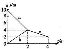 19.(10分)A、B两球沿一直线发生正碰,如图s―t图象记录了两球碰撞前、后的运动情况。下图是a、b分别为A、B碰前的位移―时间图象,c为碰撞后它们的位移―时间图象。若A球的质量为
