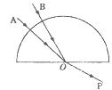 5. 如图所示,两束单色光A和B,分别沿半径射入截面为半圆形的玻璃砖中,都由圆心O沿OP方向射出。下列说法中正确的是 ( )
