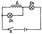 10.在圆中,L是电感足够大的线圈,其直流电阻可忽略不计,D1和D2是两个相同的灯泡,将开关S闭合,等灯泡亮度稳定后,再断开开关S,则 ( )