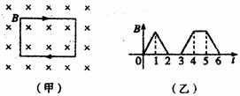 12.一个矩形线圈位于一随时间t变化的匀强磁场内。磁场方向垂直线圈所在平面(纸面)向里,如图(甲)所示,磁感应强度B随时间t的变化规律如图(乙)所示,以I表示线圈中的感应电流,以图(甲)中箭头所示方向为电流正方向,则以下I一t图中正确的是( )