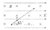 14.质量为m,带电荷量为q的粒子,以速度v与水平方向成45°角进入匀强电场和匀强磁场同时存在的空间,如图所示.粒子在电场、磁场、重力场的共同作用下做匀速直线运动,则磁感应强度的大小为 。