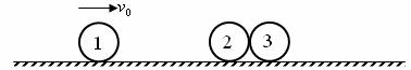 12.在光滑的水平面上有三个完全相同的小球,它们排成一条直线,2、3小球静止,并靠在一起,1球以速度