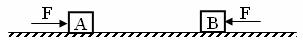 13.如图所示,A、B两物体质量分别为mA、mB且mA>mB,置于光滑水平面上,相距较远。将两个大小均为F的力分别作用在A、B上经相同距离后,撤去两个力,接下来两物体发生碰撞并粘在一起,请判断两物体将 ( )