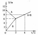 16.如图所示为A、B两球碰撞前后的位移-时间图象,其中A、B为碰撞前的图线,A+B为碰后共同运动的图线,相互作用前后沿同一直线运动,若A球的质量为