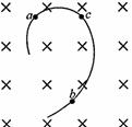 9.一个带电粒子,沿垂直于磁场的方向射入一匀强磁场,粒子的一段径迹如图所示,径迹上的每一段都可近似看作圆弧。由于带电粒子使沿途的空气电离,粒子的动能逐渐减小(带量不变),从图中情况可以确定 ( )