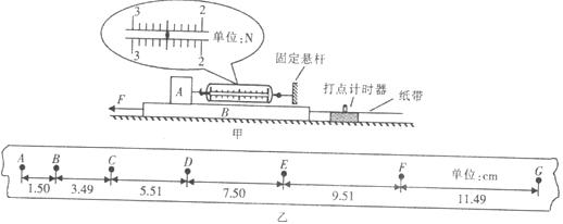 ②将纸带连接在金属板B,的后面,通过打点计时器连续打下一些计时点,测量后的结果如图乙所示,图中几个连续的计数点的时间间隔0.1s,由此可知水平力F= N