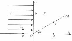 25.(20分)如图所示,在直角坐标系xoy的第二象限中,有方向沿x轴正向的匀强电场E;在第一象限中,边界OM和y轴之间有磁感应强度为B的匀强磁场,方向与纸面垂直,边界OM和x轴之间的夹角