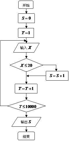 (单位:分钟),按锻炼时间分下列四种情况统计:①0~10分钟;②11~20分钟;③21~30分钟;④30分钟以上.有10000名中学生参加了此项活动,下图是此次调查中某一项的流程图,其输出的结果是6200,则平均每天参加体育锻炼时间在0~20分钟内的学生的频率是 ( )