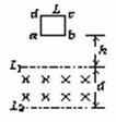 19.如图所示,相距为d的两水平虚线L1和L2之间是方向水平向里的匀强磁场,磁感强度为B,线框abcd边长为L(L<d),质量为m,电阻为R,将线框在磁场上方高h处由静止释放,ab边刚进入磁场时的速度为v0,ab边刚穿出磁场时速度也为v0,在线框全部穿过磁场的过程中 ( )