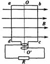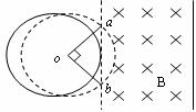 ,截面直径为d的均匀导线制成的半径为R的圆环。现让环由静止开始从图示实线位置以a匀加速进入一磁感应强度为B的匀强磁场中,当圆环运动到图示中的虚线位置