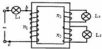 。现将三只相同的灯泡分别接在三组线圈上,并把n1接上交流电,如图所示。接通电源后,下列说法正确的是