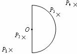 (2)为了测出半圆形玻璃的折射率,需要测量的量是_________、________,在图中标出它们。
