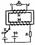 20.M和N是绕在一个环形铁心上的两个线圈,绕法和线路如下图所示。现将开关S从a处断开,然后合上b处。在此过程中,通过电阻R2的电流方向是 ( )