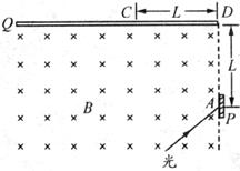 处有一涂荧光材料的金属条Q,并与P垂直。若有一细光束射到A处,金属条Q受到光电子的冲击而出现荧光的部分集中在CD间,且CD=L,光电子质量为