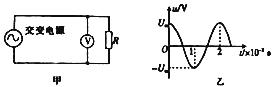 6、正弦交变电源与电阻R、交流电压表V按照图甲所示的方式连接,R=10