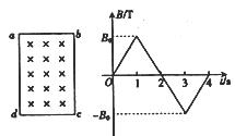 12、矩形导线框abcd固定在匀强磁场中,磁感线的方向与导线框所在平面垂直,规定磁场的正方向垂直纸面向里,磁感应强度B随时间变化的规律如图所示, 若规定顺时针方向为感应电流i的正方向,下列i-t图中正确的是( )