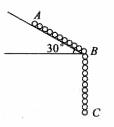 14.如图所示,质量为m、长度为l的匀质铁链的1/2在倾角为300的粗糙斜面上,其余部分竖直下垂,现在使铁链自由下滑,至整条铁链刚好全部离开斜面,在这一过程中铁链的重力势能变化了__________。