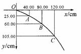 16.如图所示,在“研究平抛物体的运动”的实验中,某同学按要求描绘出了小球做平抛运动过程中的三个点A、B、C,并利用刻度尺量出了三点的坐标如图所示。则小球平抛的初速度为________m/s. (g取