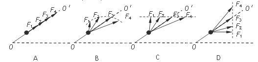 7.如图所示,小车上固定着三角硬杆,杆的端点处固定着一个质量为m的小球.当小车有水平向右的加速度且逐渐增大时,杆对小球的作用力的变化(用F1至F4变化表示)可能是下图中的(OO'沿杆方向)( )