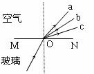 8.一束复色光从玻璃界面射向空气时分成a、b、c三束,如下图所示。三束光相比较,可以确定