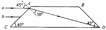 22.下图表示两面平行玻璃砖的截面图,一束平行于CD边的单色光射到AC界面上.a、b 是其中的两条平行光线。光线a在玻璃砖中的光路已给出。画出光线b从玻璃砖中首次出射的光路图,并标出出射光线与界面法线夹角的度数。(只做图不写做法)