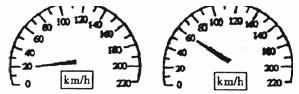 1.如下图所示是汽车中的速度计,某同学在汽车中观察速度计指针位置的变化.开始时指针指示在如下左图所示的位置,经过7s后指针指示在如下右图所示位置,若汽车做匀变速直线运动,那么它的加速度约为