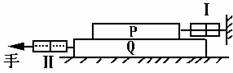 8.如下图所示,物体P放在Q之上,Q在光滑水平面上。弹簧秤Ⅰ,其左端与物体P相连,右端与墙相连;弹簧秤Ⅱ右端与Q相连,左端用手水平拉着。当Ⅰ的示数为2N时,Ⅱ的示数为3N,则