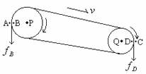 9.P 为主动轮,通过皮带,带动从动轮Q顺时针转动,皮带不打滑,A与B,C与D分别是皮带与轮缘相互接触的点。则