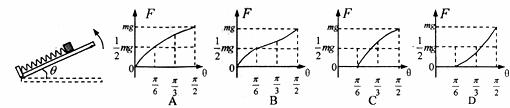 ,最大静摩擦力等于滑动摩擦力。现将板的右端缓慢抬起,直到板竖直,此过程中弹簧弹力的大小